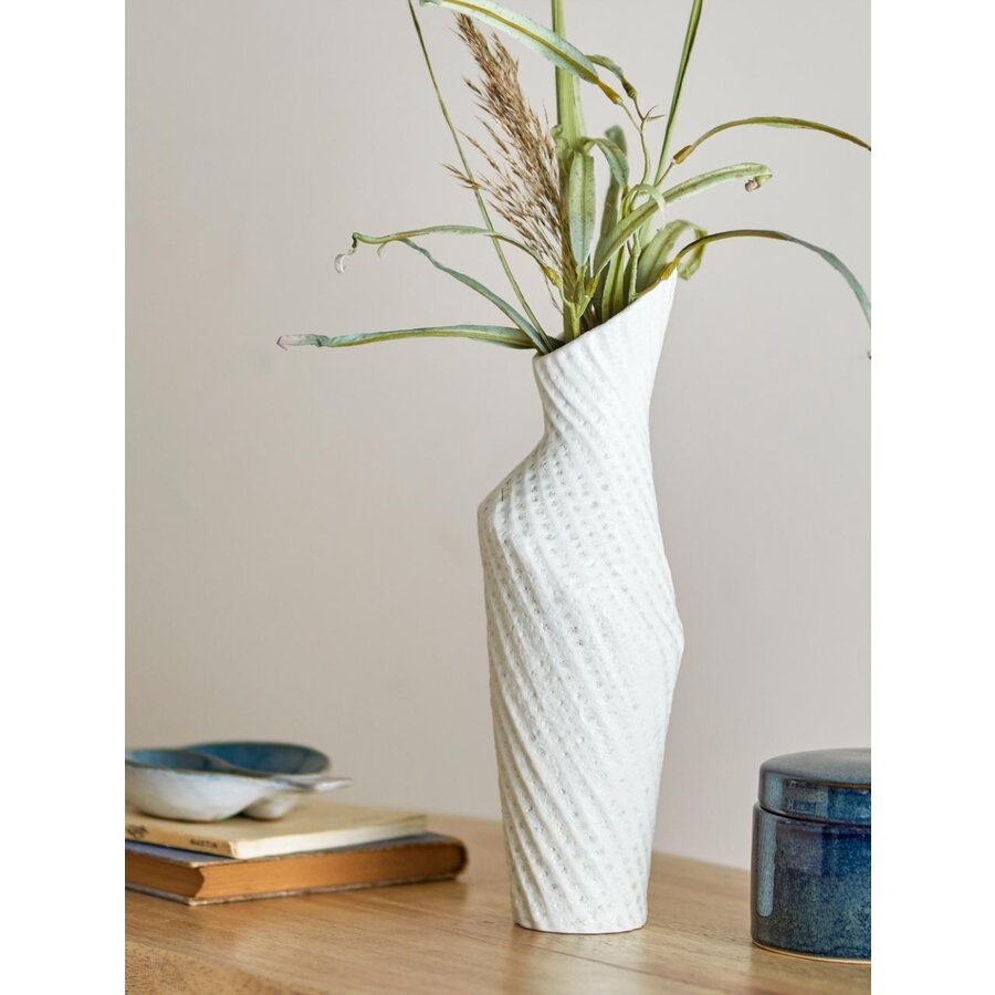 Deze mooie Bloomingville vaas wit, genaamd Fikla geeft een frisse twist aan je interieur. In deze witte vaas met twist komen je bloemen nog mooier tot z'n recht.