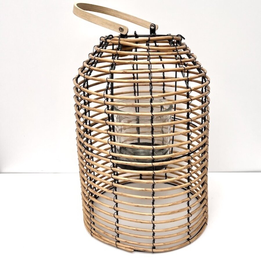 Dit houten windlicht valt op door zijn mooie leuke vorm. Dit grote windlicht van rotan geeft direct sfeer in huis. Door het zwarte accent komt dit mooie grote windlicht nog mooier uit. Dit houten windlicht komt zowel in groot en klein. Leuk te combineren dus als set. Zet ze in een mooie hoek van de woonkamer, op de brede vensterbank of bij de haard. Of hang hem op. Je kunt deze lantaarn eigenlijk in ieder interieur wel kwijt. Door het mooi gevlochten rotan geeft het een bijzonder schijnsel als je een kaars aansteekt in het binnenglas.