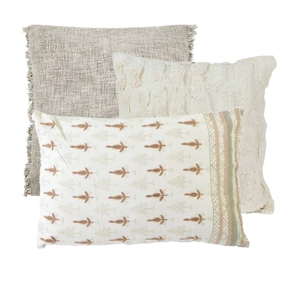 Deze mooie kussenset van Goround, House Doctor en Light&Living mag gezien worden! Het fraaie kussen van Goround met mooi patroon springt er straks uit op je bank. De tinten van dit kussen komen heel mooi samen in het beige grijze kussen van House Doctor met leuke franjes. Het frisse Off white kussen met getuft patroon van Light & Living maakte de set tenslotte compleet en geeft net die frisse touch aan de kussenset. Combineer ze met andere tinten uit het Goround kussen en je krijgt een warme sfeer in huis. Eigentijds en tijdloos! Ideaal voor een iets donkere bank of beige naturel bank. Combineer deze set kussens met een zachte plaid van Go Round plaid en wat leuke vazen erbij en je interieur is klaar!