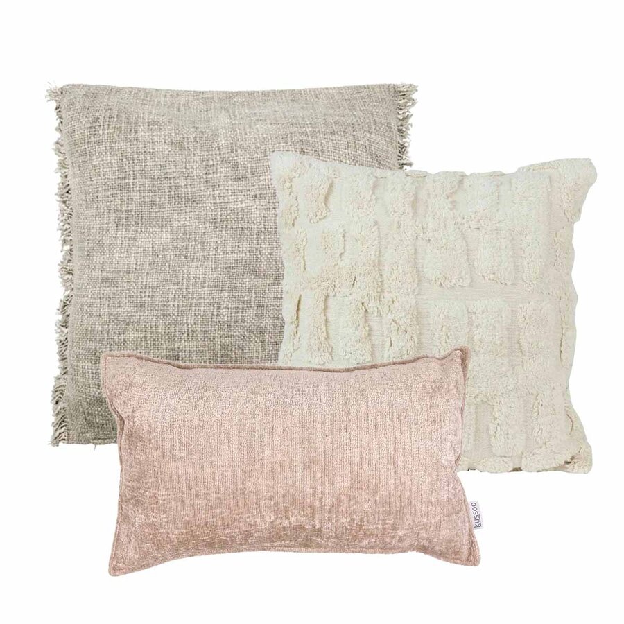 Mooie sierkussenset van House Doctor en Light&Living. Deze sierkussenset in natureltinten en oud roze is ideaal om een warme sfeer in huis te halen. Wij konden ze niet laten liggen. Jij?