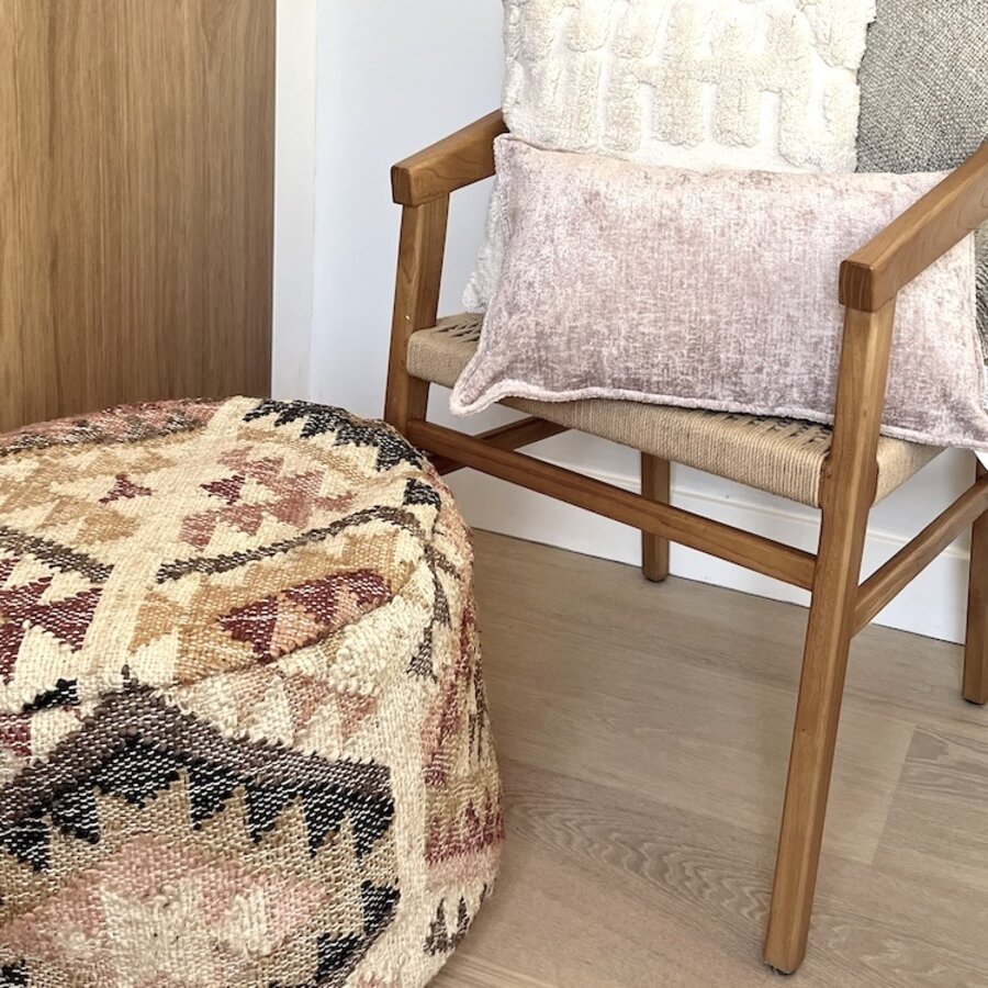 Leuke ronde poef met kelim motief. Deze super leuke poef van Pomax in warme tinten geeft direct sfeer in huis. Makkelijk als extra zitplek of als bijzettafel met een dienblad erop bij je bank. Een poef met sfeer!