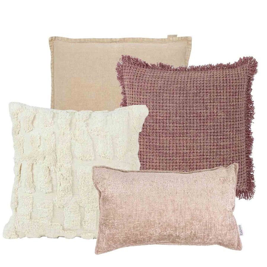 Deze fraaie set roze kussens past in ieder interieur. Het mooie roze kussen met wafeltjespatroon en leuke franjes van Bloomingville past perfect bij het gemêleerde roze kussen van Lime Light. In dit kusen zit ook een zandkleur dat terugkomt in het linnen kussen van Mrs Bloom. En tenslotte een off white kussen van Light&Living voor de frisse touch. Deze mooie set geeft een warme sfeervolle touch aan je interieur.