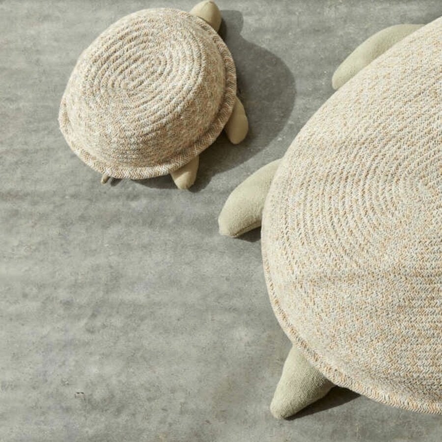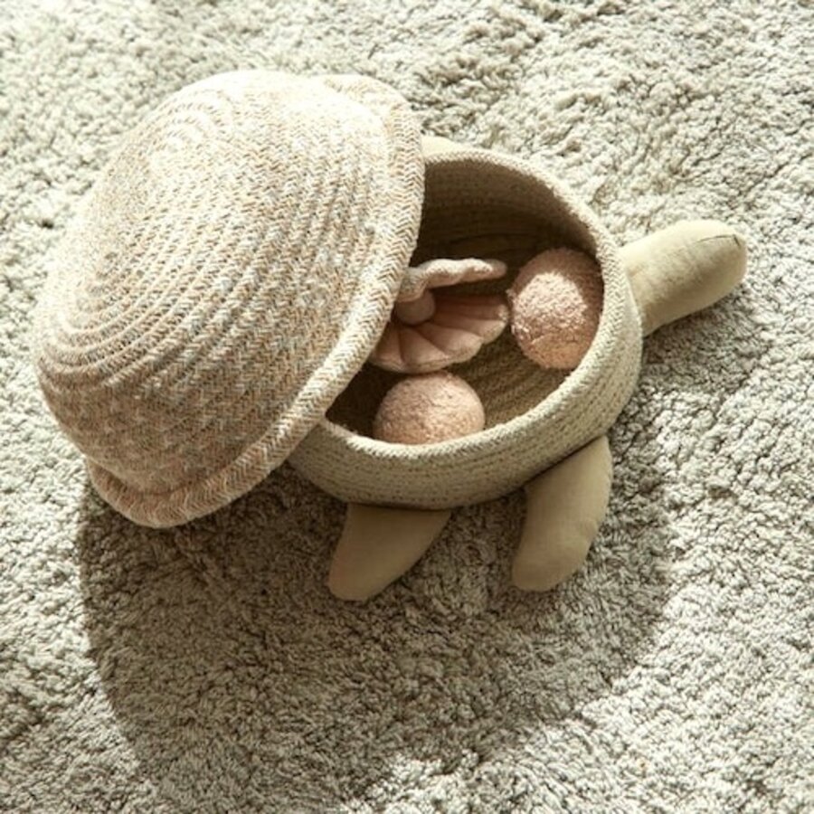 Deze leuke speelgoedmanden in de vorm van schildpadden wil ieder kind wel in zijn kamer. Mama Turtle en baby Turtle met lekker veel ruimte onder hun schilden waar extra veel speelgoed in kan. Het is handgemaakt met gevlochten katoenen koorden en gerecyclede petflessen. Alleen of samen bij elkaar. Leg er de leuke schildpad bij en klaar ben je!