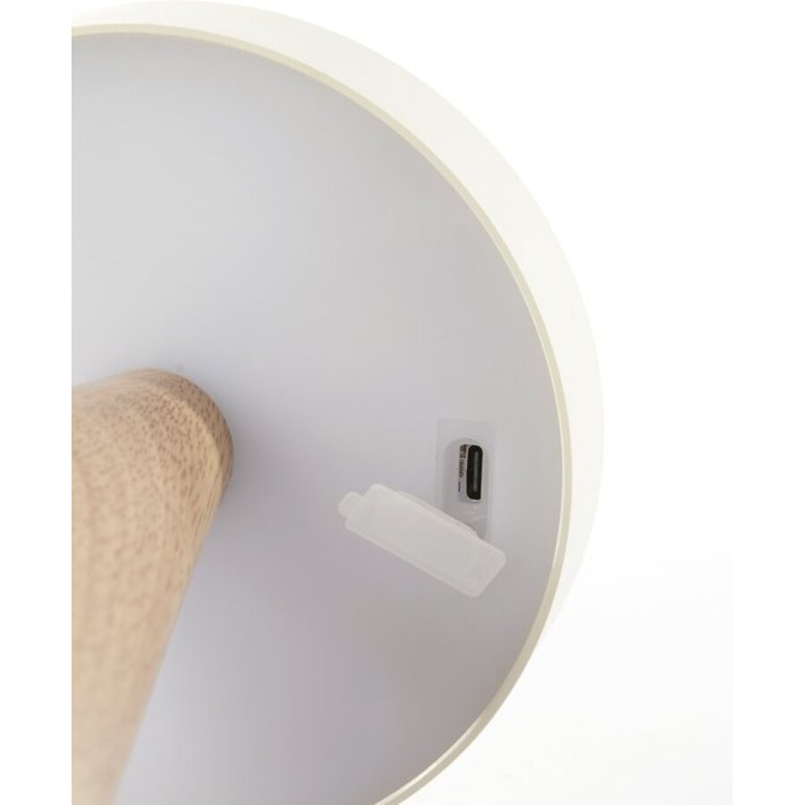 Deze leuke tafellamp Ankenta van Light&Living heeft een leuke frisse uitstraling. Dit leuke lampje valt op door zijn crème witte kap met handige lus of oortje. Pak hem op en zet hem makkelijk op een andere plekje. De warme eiken voet geeft deze mooie tafellamp extra sfeer. Hij heeft een handige oplaadbare accu (accuduur ca 7 uur). Door de eenvoud in materiaal en uitstraling past deze stoere tafellamp in elk interieur. Geef deze lamp een mooi plekje op een bijzettafel of op een bureau! Maar ook op studentenkamers misstaat hij niet.